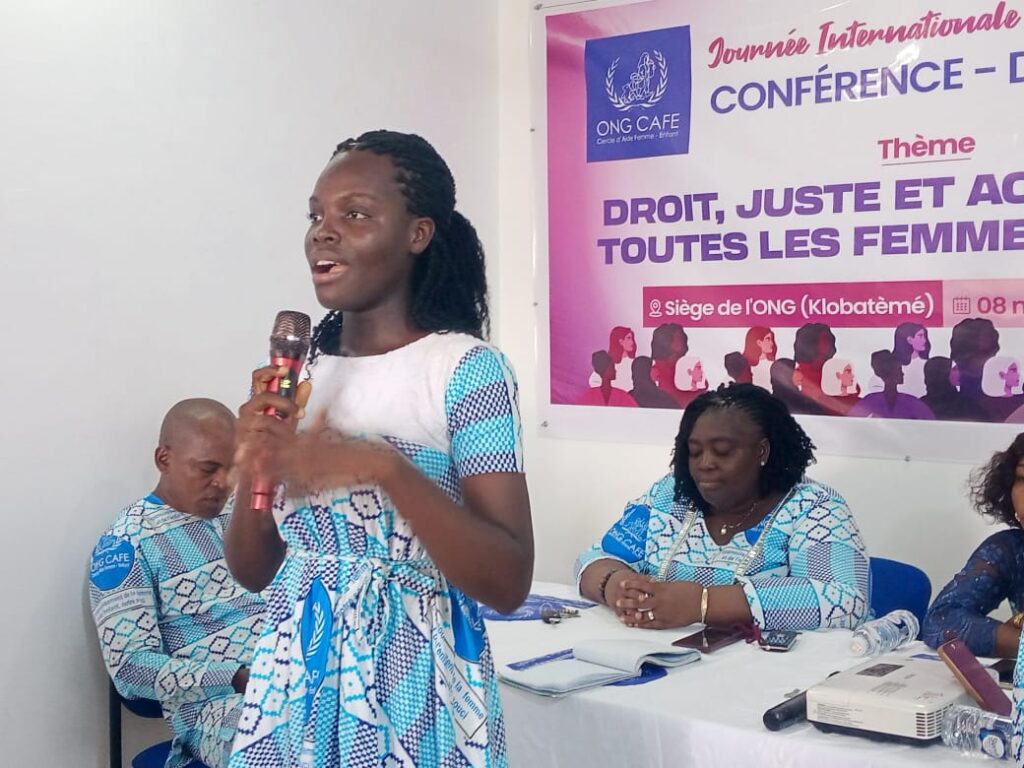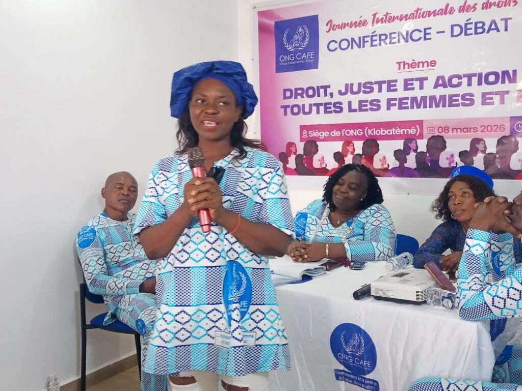 L’ONG Cercle d’Aide Femme-Enfant (CAFE) a commémoré dimanche 8 mars la Journée Internationale des Droits de la Femme par une conférence-débat à son nouveau siège à Klobatèmé, dans la commune Golfe 1, autour du thème : « Droit, justice et action pour toutes les femmes et les filles ».
