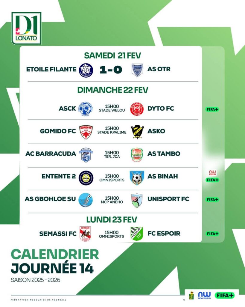L’Étoile Filante lance la phase retour du championnat national de première division avec une victoire (1-0). Le Shooting Star a remporté le derby de la capitale face à l’AS OTR ce samedi au municipal de Lomé sur un but contre son camp.
